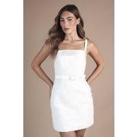 Elegant square neckline with delicate strappy detail for a sophisticated bridal look Stunning all-over embellishment creates a luxurious textured finish Flattering mini length perfect for modern brides seeking a contemporary silhouette Coordinating belt cinches the waist for a beautifully defined shape Mesh fabric offers structure whilst maintaining a light, ethereal feel Make a statement on your special day with this exquisite strappy mini dress from Coast. The square neckline frames your dcolletage beautifully, whilst the textured embellishment catches the light with every movement. Perfect for the contemporary bride who wants to showcase her individuality, this dress works wonderfully for civil ceremonies, registry office weddings or as a stunning reception outfit. Style with minimal jewellery to let the dress take centre stage - delicate stud earrings as shown on our model provide just the right amount of sparkle without overwhelming. Complete your bridal ensemble with strappy heel...