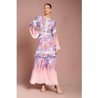 Placement Print Lace Frill Detail Maxi Dress | Coast Women's Placement Print Lace Frill Detail Maxi Dress in Pink | Size: 12