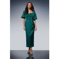 Elegant square neckline adorned with three decorative satin bows for a feminine touch Dramatic puff sleeves create a statement silhouette with volume and flair Fitted bodice that gracefully transitions into a sleek midi-length skirt Luxurious satin fabric that catches the light beautifully for evening occasions Sophisticated ankle-length design perfect for showcasing statement footwear This enchanting Oasis midi dress combines timeless elegance with contemporary design elements. The striking puff sleeves create a dramatic silhouette whilst the triple bow detailing adds a playful yet sophisticated touch to the square neckline. The fitted bodice accentuates the waist before flowing into a sleek midi skirt that falls gracefully to the ankle. Style with strappy heels and a compact clutch bag for cocktail parties or evening events. For cooler evenings, layer with a tailored blazer or delicate shawl. This versatile piece transitions effortlessly from formal dinners to wedding receptions, mak...