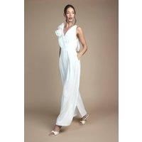 Elegant V-neckline with dramatic corsage shoulder detail for a contemporary bridal statement Sophisticated cowl back design adds an unexpected touch of glamour Wide leg silhouette offers effortless movement and modern comfort Practical side pockets discreetly integrated into the flowing design Crepe fabric provides a luxurious drape that flatters the figure beautifully Make a striking impression on your special day with this contemporary bridal jumpsuit from Coast. The perfect alternative to a traditional gown, this piece combines modern sophistication with timeless elegance. The flattering V-neckline frames the dcolletage beautifully, whilst the statement corsage detail adds artistic flair to one shoulder. The wide-leg cut creates a graceful silhouette that moves with you throughout your celebrations, from ceremony to first dance. Style with delicate strappy heels as shown and statement drop earrings for a refined bridal look. Complete your ensemble with a sleek updo to showcase the s... - Manufacturers part number: Coast_5045773174720