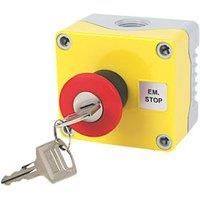 Push button control station with red mushroom head and key reset. Includes 1 normally open and 1 normally closed contact block, 2 x M20 threaded and 1 x M20 non-threaded cable entry knockouts. IP56 Flame Retardant ABS UL94-HB Casing M20 Knockouts 1 x Normally Open & 1 x Normally Closed - Manufacturers part number: 1DE0103AGSF