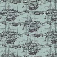 A 1950's design inspired from an archive document from a John Line collection in Whitworth, this striking design with a hand drawn effect features various boats resting at anchor. Available in 3 colours- shown here in cerulean sea blue colourway. - Manufacturers part number: Little Greene_0288ZICERUL