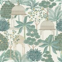 Beautifully illustrated trees adorn this design to create a garden oasis, with scattered pavillion structures throughout. Seen here in the Parchment/Green colourway. - Manufacturers part number: Esselle Home_100015EH