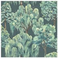 A sprawling treescape filled with elegant willow trees in a luscious green, painterly style. Please note: Actual pattern repeat is 25cm. Seen here in the Navy colourway. - Manufacturers part number: Esselle Home_100049EH