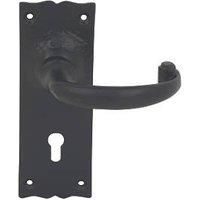 Pair of traditional design, lever on backplate door handles with a black, antique effect. Traditional Design Steel Construction Suitable Door Thickness: 44mm Suitable for Timber Doors Suitable with Mortice Sashlock 1 Year Guarantee For Internal Use - Manufacturers part number: 1603H
