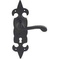 Pair of traditional design, lever on backplate door handles with a black, antique effect. Traditional Design Iron Construction Suitable Door Thickness: 44mm Suitable for Timber Doors Suitable with Mortice Sashlock 5 Year Manufacturer's Guarantee (T&Cs Apply) For Internal Use - Manufacturers part number: 3713H
