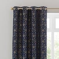 * Golden geometric design* Recycled polyester lining to create drape* Easy to hang eyelet header Fashioned in a sumptuous cut velvet, these luxurious curtain panels boast a woven geometric design. The rich golden yarns contrast beautifully with the deep velvet pile and adding textural depth to the contemporary geometric design. This Geo Cut Velvet pair of curtains exude elegance and beauty. The durable lining, woven from recycled polyester, will aid preserve the face fabric from fading allowing your cur... - Manufacturers part number: 30769448