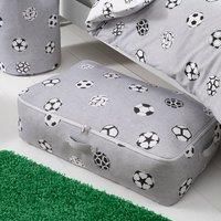 * Football design* Zip fastening to keep contents secure* Made from cotton canvas* Underbed storage solution Tidy up kit, toys or spare bedding with this Football underbed storage bag. Made from 100% cotton canvas, it's lightweight, durable and easy to slide under beds or low furniture. The bold football design adds a sporty touch to any room. Handy side handles make it easy to grab and go, while the zip fastening keeps everything neatly tucked away. Matching items are available to complete the look. - Manufacturers part number: 30972265
