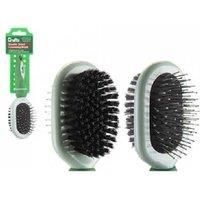 Cushioned Comfort: Gentle on your dog's skin and coat. Ergonomic Grip: Soft handle for easy, comfortable grooming. Durable Materials: Built with TPR + PP for long-lasting use. Reduces Shedding: Keeps fur under control and coats healthy. Universal Fit: Suitable for short, medium, and long-haired breeds. Dual-Action Design: Stainless steel pins for detangling, soft bristles for shine.