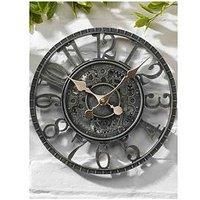 Smart Garden Newby Mechanical Verdigris 12"Clock Roman numerals and skip hand movement Quartz accuracy Weather resistant hand-painted polyresin Diameter: 12 inches For both indoor and outdoor use Depth: .03 M Height: .3 M Width: .3 M Location: Garden