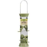 Decorate your garden while feeding the birds in your garden with this seed feeder from Chapelwood. With an attractive olive green finish and hanging design, this little feeder can sit in a tree or from a hook and give the birds that visit your garden something to eat. Suitable for standard bird seed (not nuts). This feeder has convenient perches and feeding holes for the birds as well as a transparent tube so you can easily tell when it needs refilling. It's easy to refill too with a handy lift up top....