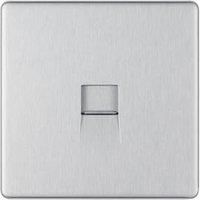 This telephone socket is easy to install and can be used as the master socket for phone and internet connection. The ultra-slim screwless faceplate has a brushed steel finish and clips on and off and sits flush against the wall.