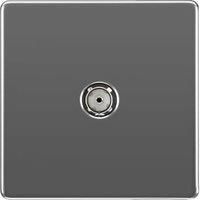 This single coaxial socket can be used for TV or FM aerial connections and has a decorative raised metal profile with a black nickel finish. This socket has a screwless flatplate that clips on and off and sits flush against the wall.