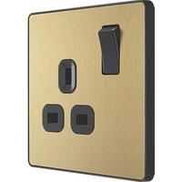 This Evolve brushed brass 13A single switched socket from British General has been designed with angled in line colour coded terminals and backed out captive screws for ease of installation and fits a 25mm back box making it an ideal retro-fit replacement for existing sockets. The socket has a low profile screwless flat plate that clips on and off making it ideal for modern interiors. - Manufacturers part number: PCDSB21B