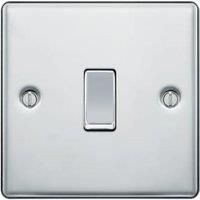 This polished chrome finish 10A single light switch operates one light switch in a room. The 2 way switching allows a second switch to be added to the circuit to operate the same light from another location (e.g. at the top and bottom of the stairs). The raised metal faceplate has rounded edges for a stylish finish.