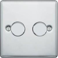 This double dimmer switch allows you to control your light in any room in the home. Easy to install this switch has a 2 way function which allows for a second switch in the circuit (e.g. at either ends of a hallway). It also features an adjustable minimum level for greater control of light levels. The raised faceplate is finished in polished chrome.