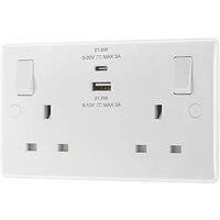 Double socket with rounded edges. Includes type A and C USB charging ports, ideal for charging mobile devices. Fitted with twin earth, and includes Smart USB standby mode which auto-detects the USB device and adjusts charging pattern to suit, with protective overload function. Front plate is resistant to fading, discolouration and scratches, with inherent anti-microbial properties to reduce bacterial development and inhibit the growth of infectious diseases. Requires 25mm backbox (not included). Ideal f... - Manufacturers part number: 822UAC22