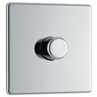 BG Screwless Flatplate Single Wall Dimmer Switch 1 Gang Polished in Chrome Steel