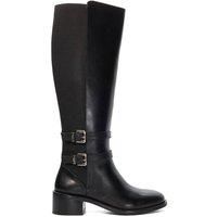 Dune London Tatter Leather Knee High Riding Boots - Black Crafted from the finest leather our Tatter knee-high boots have been designed with two branded gold buckles on the ankle. Finished with a side zip the addition of an elasticated side panel ensure they fit the leg perfectly. Resting on a comfortable low block heel this round-toed silhouette offers a timeless aesthetic with a contemporary touch. Heel Height: up to 2.5 Inch Material Content: LEATHER Washing Instructions: Wipe Clean Lining: Other Mat... - Manufacturers part numbers: 484TATTER|Dune London_5050808350376