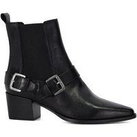 Dune London Panino Buckle Detail Western Boot This Western inspired ankle boot has been crafted from suede and features two gold hardware buckles that wrap around the ankle. Designed with elasticated side panels and a rear pull tab Panino rests on a mid-height stacked kicked in heel and offers endless styling options. Material Content: LEATHER Washing Instructions: Wipe Clean Heel Height: up to 2.5 Inch Lining: Other Materials Sole: Other Materials Upper: Suede