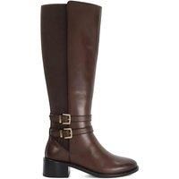 Crafted from the finest leather our Tatter knee-high boots have been designed with two branded gold buckles on the ankle. Finished with a side zip, the addition of an elasticated side panel ensure they fit the leg perfectly. Resting on a comfortable low block heel this round-toed silhouette offers a timeless aesthetic with a contemporary touch. - Manufacturers part numbers: 509TATTER|Dune London_5050808473358