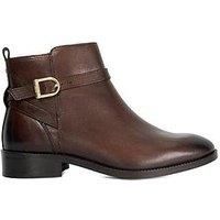 Upgrade your cold-weather wardrobe with Pemma. Crafted from premium leather, this versatile boot features a timeless almond toe and an adjustable buckle strap for a personalised fit. A handy pull tab ensures effortless wear, while the side zip adds a sleek and practical touch. Whether styled with slouchy knits or tailored trousers, Pemma is designed to elevate every seasonal look. | Dune London 'pemma' Leather Ankle Boots In Brown - Manufacturers part number: Dune London_5050808750701