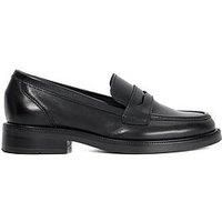 With its classic penny trim and softly structured almond toe, Giya offers a refined take on the traditional loafer. Crafted from high-quality leather for a premium look and feel, this slip-on style delivers all-day comfort without compromising on sophistication. Versatile and easy to wear, it's the perfect finishing touch to sharp tailoring for important meetings or paired with dark-wash denim for a polished off-duty look. | Dune London Women's 'Giya' Leather Loafers in Black | Size: 3