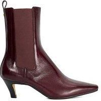 Dune London Odele Chiselled Toe Leather Ankle Boots - Dark Red Elevate your cold-weather footwear collection with Odele. Boasting an elegant chiselled toe elasticated side panels Dune London branding and a chic kitten heel these ankle boots pair perfectly with everything from skinny jeans to midi skirts. Heel Height: up to 2.5 Inch Material Content: RED-LEATHER Washing Instructions: Wipe Clean Lining: Textile Sole: Other Materials Upper: Leather PLAIN FINISH - Manufacturers part number: Dune London_5050808784485