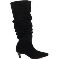 Elevate your wardrobe with Saunders, the epitome of refined elegance. Crafted from sumptuous suede, these ruched boots rest on a graceful mid-height comma heel. The subtle square-off toe adds a contemporary edge, while the partial inside zip ensures a seamless fit. Perfect for the modern woman who values sophistication and statement style, Saunders is the ultimate finishing touch to elevate everything from tailored trousers to flowing dresses. | Dune London Women's 'Saunders' Suede Knee High Boots in Black | Size: 5 - Manufacturers part numbers: 011SAUNDER|Dune London_5050808826574