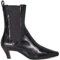 Dune London Odele Chiselled Toe Suede Ankle Boots - Black Elevate your cold-weather footwear collection with Odele. Boasting an elegant chiselled toe elasticated side panels Dune London branding and a chic kitten heel these ankle boots pair perfectly with everything from skinny jeans to midi skirts. Heel Height: up to 2.5 Inch Material Content: PRINTED LEATHER Washing Instructions: Wipe Clean Lining: Textile Sole: Other Materials Upper: Leather TEXTURED FINISH
