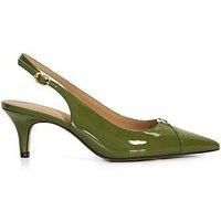 Dune London Distinctive Slingback Heels - Green Perfect for elevating both day and evening ensembles, step into sophistication with Distinctive. Crafted from green leather with a refined croc effect, these kitten heel slingbacks are a statement in understated luxury. The sleek silhouette is complemented by a comfortable low heel, while the adjustable ankle strap ensures a flawless fit. Heel Height: 3 Inch Material Content: LEATHER Washing Instructions: Wipe Clean Lining: Other Materials Sole: Other Mate...