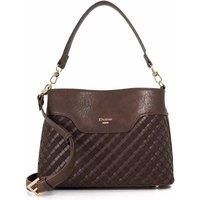 Elevate your everyday style with this versatile shoulder bag. Crafted from a mix of woven and smooth materials, it features a removable crossbody strap for effortless styling. Resting on gold feet to protect the base, it's detailed with gold hardware branding on the front. Spacious enough to hold your essentials, Dinidelphine is the perfect day bag for chic, everyday wear. | Dune London Women's 'Dinidelphine' Bag in Brown - Manufacturers part numbers: Dune London_5050808852016|332DINIDEL