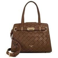 Dune London Dinidefine Belted Grab Bag - Brown Reimagine your wardrobe staples and choose Dinidefine a grab bag you'll reach for all year round. Expertly crafted from premium fabric and boasting a chic belted detail secured by a gold-tone buckle this stunning style is the perfect mix of classic design and functionality. It features our always-iconic Dune London branding and an optional crossbody strap for versatile wear making it your go-to accessory every time. The side pocket includes a chic removabl...