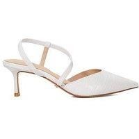Dune London Charming Embellished Court Shoes - White Every wardrobe needs that special stand out piece. These embellished courts will add a touch of enchantment to every step. Featuring a gem-encrusted bow they rest on an elegant high heel. The ankle the strap can be easily adjusted for a comfortable fit. Heel Height: up to 2.5 Inch Material Content: LEATHER Washing Instructions: Wipe Clean Lining: Other Materials Sole: Other Materials Upper: Leather Womens Shoes Fitting: Standard ELASTICATED St...