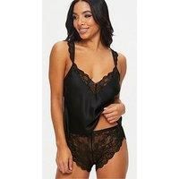 Ann Summers Satin Admiring Cami Set Black PJ's Our Admiring Cami Set is bound to set pulses racing. Made from a stunning combination of satin and lace, this two-piece set includes a cami top with lace trim on the shoulder straps and at the v-shaped neckline whilst the shorts are made from sheer lace with a scalloped hem. Slip into yours for an unforgettable night in. Browse the rest of our cami sets or explore our robes to update your wardrobe. Made from satin and lace Material Content: Polyester 100 %...