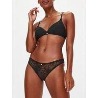KBX Alice Brazilian Made from a modern framed lace, the black Alice Brazilian by KBX offers a comfortable and pretty addition to your lingerie drawer. Complete with an elasticated waistband, a Brazilian-shaped back and detailed with subtle brushed gold hardware at the centre front. Made from modern lace with framed edges Material Content: Poly amide 85 %,Elastane 15 % Brushed gold hardware at centre front Elasticated waistband Brazilian Lace 85% Polyamide, 15% Elastane. Gusset Liner 100% Cotton. Excludi... - Manufacturers part number: 127PV