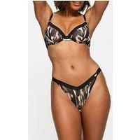 KBX Zadie Brazilian Introducing Zadie by KBX, the Brazilian in an abstract animal-print mesh. With an elasticated v-shaped waistband that sits low on the hips, the Zadie Brazilian is made from soft, breathable mesh. Complete with a cutout at the centre back and brushed champagne hardware. Made from abstract animal print mesh Material Content: Poly amide 90 %, Elastane 10 % Brushed champagne gold-toned hardware V-shaped front Elasticated waistband Breathable