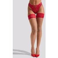 Our Lace Top Hold Ups are the perfect addition to complete your look. Made with a lace top welt, these hold ups are complete with a sheer denier to make your legs look instantly flawless. The silicone strips around the thigh make these hold-ups require no need for suspenders, so you can keep them firmly in place. Wear yours with your favourite Ann Summers lingerie for an irresistible ensemble. X Small - 4-6. Small - 8-10. Medium - 12-14. Large - 16-18. X Large - 22-24. | Ann Summers Lace Top Hold Ups In Red - Manufacturers part number: 1331W