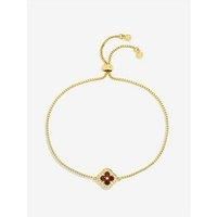 Jon Richard Jon Richard 14K Gold Plated and Ruby Clover Toggle Bracelet Our 14k Gold Plated and Ruby Clover Toggle Bracelet is delicately designed, featuring a delicate clover design that symbolises luck and love. Set with rich ruby-toned stones and finished in radiant gold plating, this timeless piece adds a touch of elegance to any jewellery collection. Depth: 12 MM Height: 12 MM Width: 12 MM Fashion Jewellery Type: Bracelets Metal Type: Base Metal Stone Type: Dress Jewellery - Manufacturers part number: Jon Richard_5051024876091