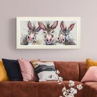 * Framed print* Playful donkeys* Glass-free to remove glare Add a touch of charm to your walls with this whimsical framed print, featuring three playful donkeys brought to life with vibrant colours and expressive detail. Created by artist Ashley Saunders, the artworks textured finish adds depth and character, all without the glare of glass. The cream-coloured frame, complete with a white accent slip, beautifully complements the design for a soft, stylish finish. Ready to hang, its an effortless way to r... - Manufacturers part number: 30976614