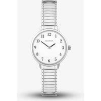 The watch has a round, ion-plated silver, brass case with a white dual layer dial. The watch fastens with a stainless steel expander bracelet. - Manufacturers part number: 30131