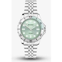 The watch has a round, ion-plated silver alloy case with a fixed silver and light green bezel and a light green dial. The watch is fastened with a stainless steel bracelet and is water resistant up to 50 metres. - Manufacturers part number: 40565