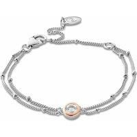 Clogau Celebration Double Chain Bracelet 3SCLC0061 measures 19cm and is made from sterling silver with rare Welsh 9ct rose gold. It is composed of a double beaded curb chain with a round faceted white topaz gemstone weighing 0.5ct. Motif height: 6.5mm Motif width: 6.5mm Bracelet weight: 3.43 grams