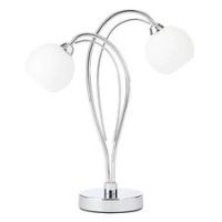 This Soni table lamp retains a classic and minimalistic style, expressing an opulent feel across a room which is ideal for a living room or bedroom in particular to illuminate the area in luxurious luminosity. A chrome finish gives a glossy sheen to the light, allowing it to adapt to many kinds of interior due to the modest and understated look. The opal glass shades compliment the finish on the curved base, creating a truly gorgeous piece which is perfect for any home. | BHS Lighting Soni Table Lamp in Metallic Silver