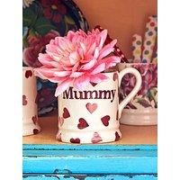 Emma Bridgewater Pink Hearts Mummy 1/2 Pint Mug A thoughtful gift for new momma bears and experienced mums alike, the Pink Hearts Mummy mug by Emma Bridgewater is a wonderful way to make parents feel special. Beautifully made from English earthenware, this mug’s tankard-inspired shape is brought to life by artwork featuring pink hearts and the word mummy around the exterior, as well as more hearts on the interior wall. A slim handle adds to the charm, and it’s finished with a coordinating br...