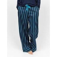 Cyberjammies Marina Navy Printed Stripe Wide Leg Pyjama Bottoms Size & Fit True to size - order your usual size Relaxed fit Available in sizes 6 - 28 Details Marina Navy Printed Stripe Wide Leg Pyjama Bottoms - Navy by Cyberjammies Blue Wide leg Drawstring waist Pull on Striped print Side slip pockets Material & Care Material Content: 60% Cotton,40% Modal Washing Instructions: Machine Washable