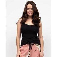 Cyberjammies Jersey Strappy Hidden Support Vest - Black Size & Fit True to size - order your usual size Available in sizes 6 - 28 Details Jersey Strappy Hidden Support Vest - Bonnie Black by Cyberjammies Black Sleeveless Adjustable straps Scoop neck Pull on Lace trims Hidden support Material & Care Material Content: 95% Modal 5% Elastane Washing Instructions: Machine Washable