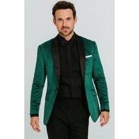 Why not try a more luxurious look at your next formal event£ The plush velvet fabric on this tuxedo adds a new level of opulence to a classic style. In a clever design touch, the dark green velvet is offset by the black satin-feel lapel, which curves around the neckline in an elegant shawl style. Teamed with a black bow tie (available separately), this velvet jacket is perfect for evening dinners, weddings and glamorous ceremonies. | Dobell Men's Dark Green Slim Fit Contrast Shawl Lapel Velvet Jacket |...