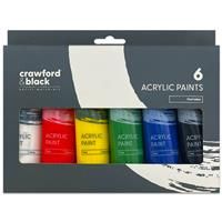 Create masterpieces with this fantastic set of six acrylic paints from Crawford & Black! This lovely selection of six, brightly coloured paints from Crawford & Black are perfect for both beginners and more experienced artists looking to unleash their artistic side. Use directly from the tube or mix with water or acrylic mediums for a great finish. Add a fun pop of colour to your art and craft projects with these brilliant paints. Suitable for a variety of surfaces including paper, wood and canvaes these...