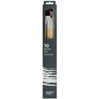 This fantastic value 10 Piece Brush Set & Canvas Bag from Crawford & Black is great for growing your range of artist supplies. Brush Sizes: 4, 6, 8, 10, 12, 18, 16, 18, 20, 22 Perfect for both beginner and experienced artists, this fantastic brush set is ideal for all paints whilst giving you a great way to keep them stored safely. Product Information: Paint Brush Set With canvas bag 11 Pieces Brand: Crawford & Black Assorted brush sizes